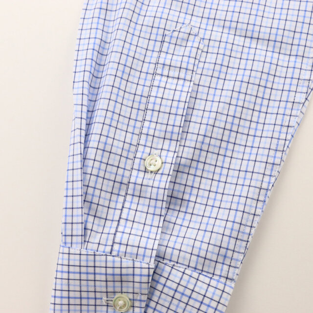 | 素材特徴 | ブルーのグラデーションが技ありの清潔感溢れるタッターソールチェック。 チェック柄ではとてもめすらしい、キメが細かな120番手双糸のドレッシーな生地を使い、上品な見た目にこだわりました。 高級な細い糸を高密度に織り込んだツイル織で、シャツ地として適切なハリとコシを持ちながら、ふんわりと柔らかくシルクのような滑らか肌触りです。 さらに、手入が簡単なイージーアイロン(イージーケア)加工も施しています。 |
