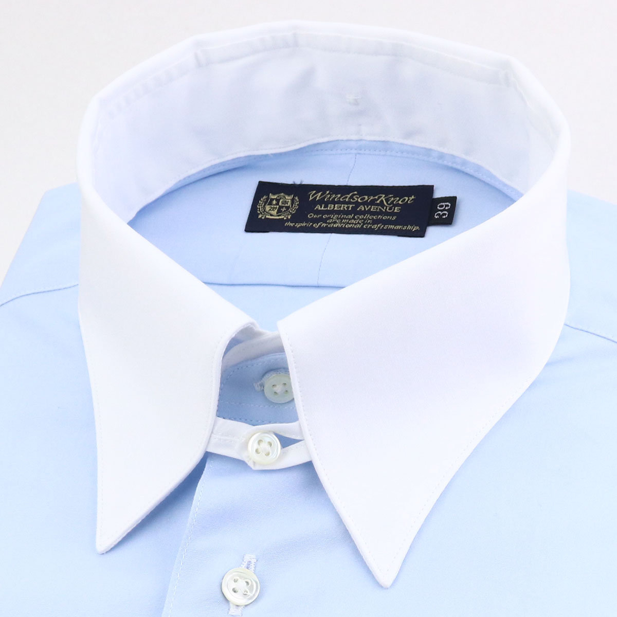 | その他 | タブカラー・・・ネクタイを締めた時の襟元の華麗さはピンホールカラーと並び、他を寄せ付けません。 ネクタイ着装後タブを留めることによりノットが「グッ」ともち上がり、ドレスアップを印象付けます。 ノータイのドレスシャツ着用が浸透する中、このタブカラーはその対極に位置します。 ストイックなダンディズムを訴求する、メンズドレッシングの究極です。 |