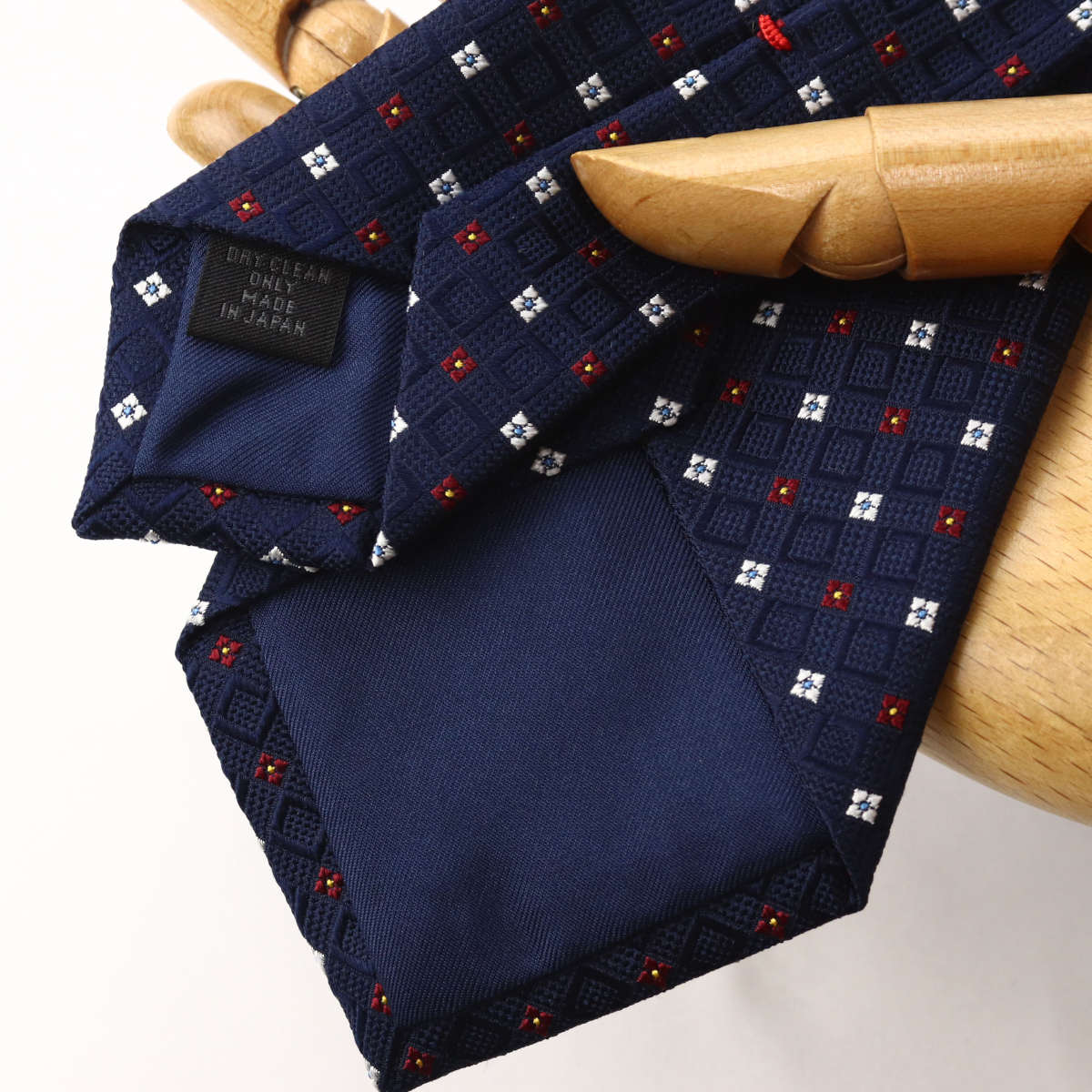 | 素材特徴 | 高品質な国産シルク生地を厳選して使用しています。グランドに格子のシャドー柄を織り込んでおり、立体的で高級感があります。 さらに、シルクの打ち込みも非常に優れており、ネクタイにしっかりとした質感、ハリ、コシをもたらしています。 ノットを締めやすく、美しいノットのディンプルを作り出すのに最適です。 |