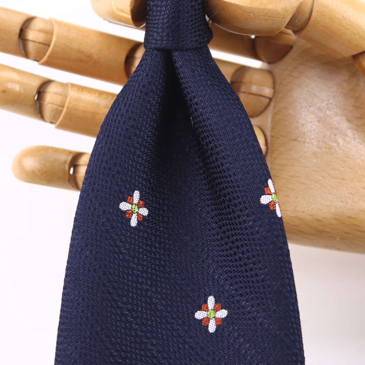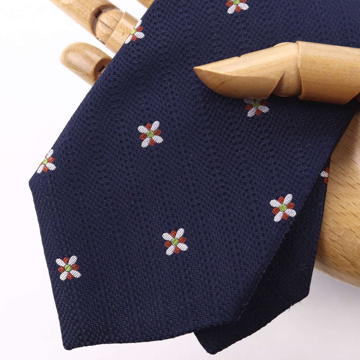 | 商品特徴 | 「ざっくりとした風合いの小紋タイ」 ざっくりとした風合いの花柄小紋タイです。ボリューム感があり、立体的なVゾーンを作り出します。白を基調とした花柄が華やかさを加え、シンプルなコーディネートにアクセントを添えます。大人のビジネスシーンにふさわしい、上品でありながら存在感のある一本です。 このネクタイは、熟練の職人が一針一針丁寧に仕上げています。 |