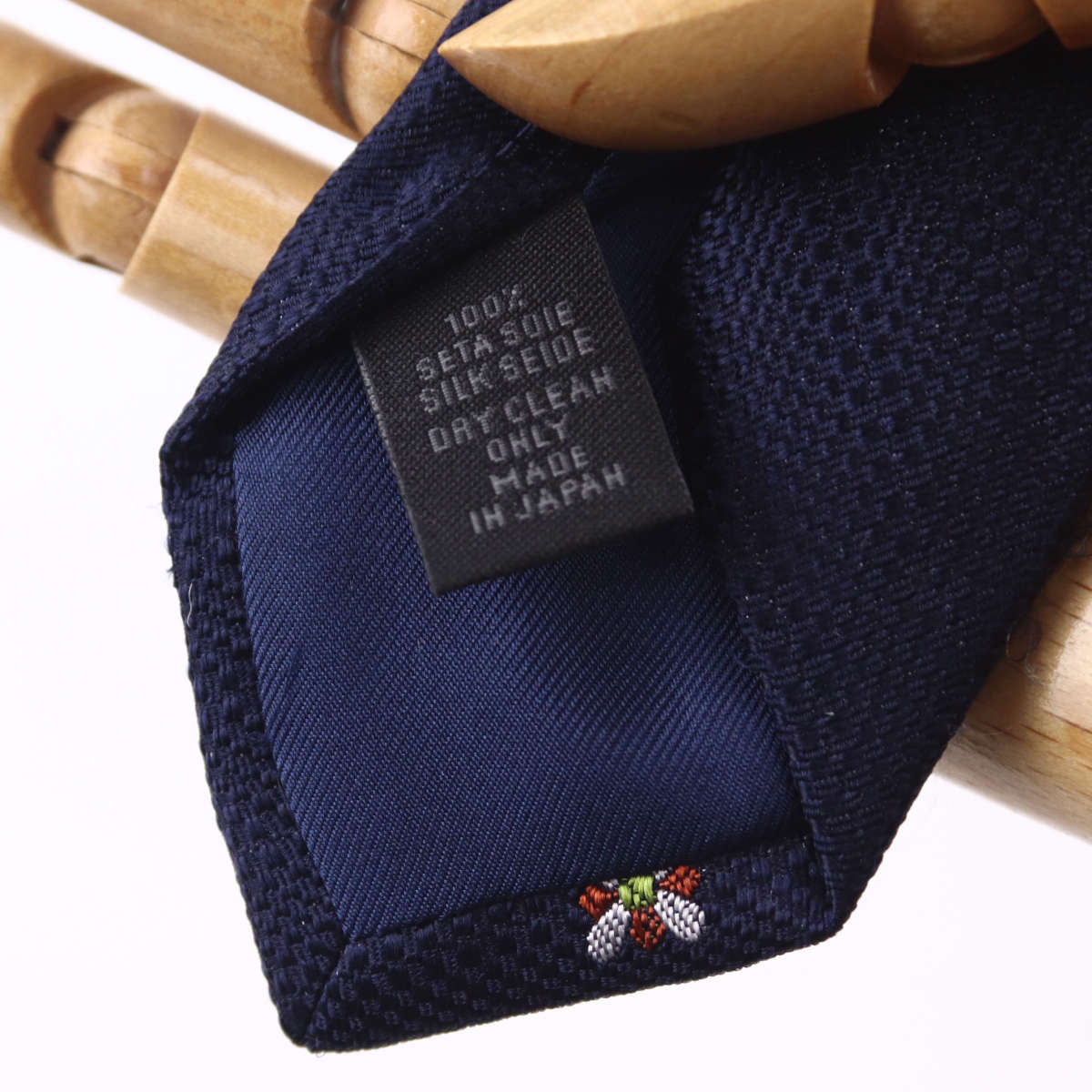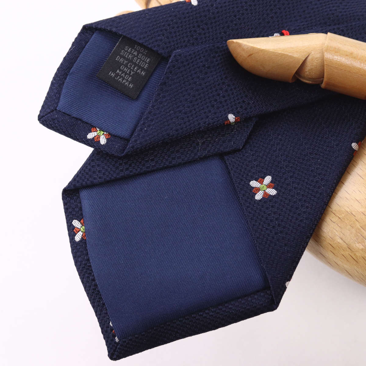 | 素材特徴 | 高品質な国産シルク生地を厳選して使用しています。ざっくりとした織りで、立体感のある生地感が特徴です。シルクの打ち込みも非常に優れており、ネクタイにしっかりとした質感とハリ、コシを与えます。ノットが締めやすく、美しいディンプルを作り出すのに最適です。 |