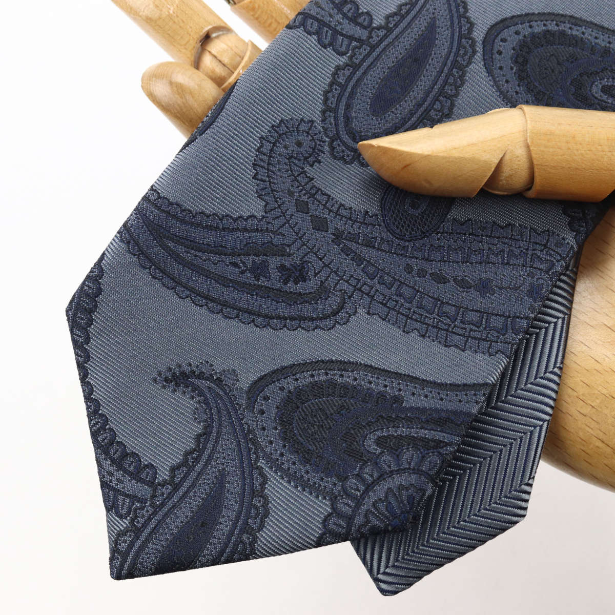 | 商品特徴 | 英国調のヘリンボーンとペイズリーのパターン。 伝統的な柄を大剣と小剣で柄を切り替えた上品なクレリックタイ・スタイル、「クラシックコンビタイ」です。 小剣を少しだけ覗かせて、大人の遊び心をプラスした、今日的なクラシックスタイルを楽しんでください。 |