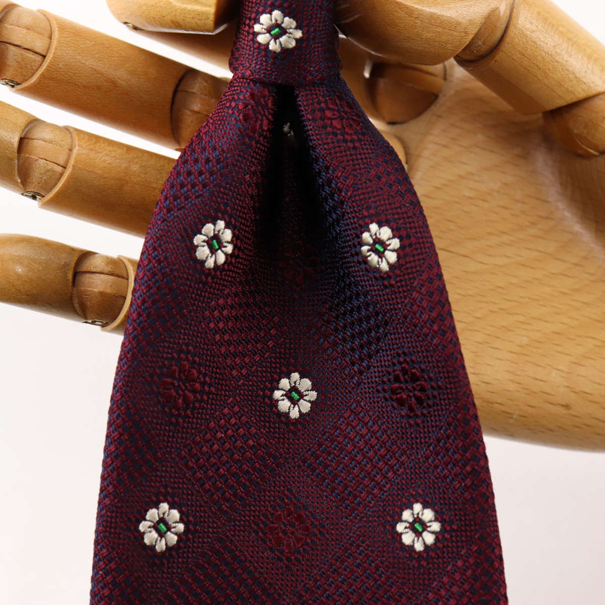| 商品特徴 | 「織りの奥行きが際立つ、花柄小紋」 繊細な花柄小紋に、地模様として市松調の織りを重ねた一本。 柄と織りが光の当たり方でさりげなく表情を変え、奥行きと立体感のある仕上がりです。 主張しすぎない上品なデザインが装いに自然に馴染み、織りの立体感が華やかさをそっと添えます。 大人のビジネススタイルにふさわしい、上品で格調ある一本です。 熟練の職人が一針一針丁寧に仕立てたネクタイ。 締めやすく、美しいノットが決まる仕上がりが、確かな品質を物語ります。 |