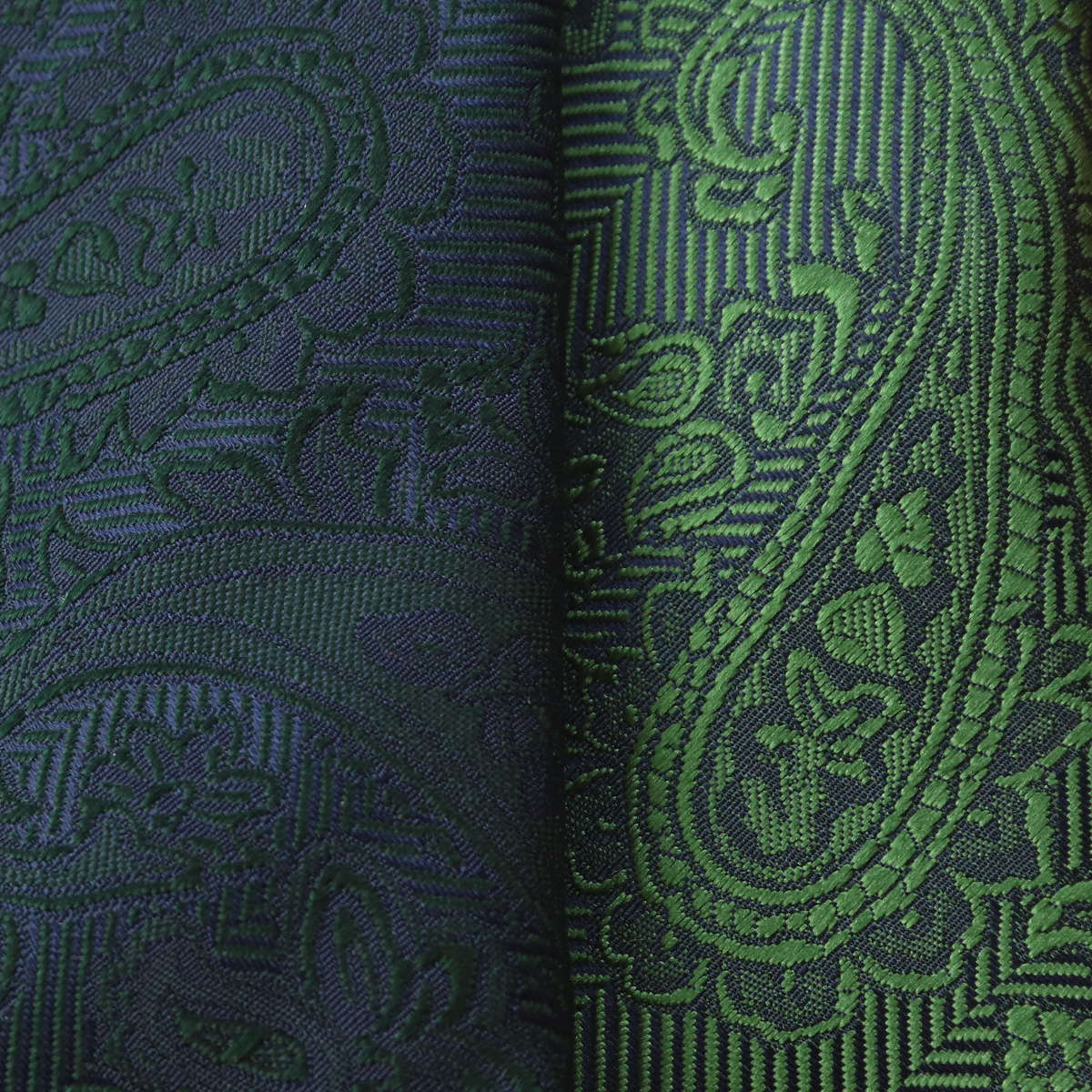 | 素材特徴 | 大剣:ダークグリーン(暗い緑、鉄色) 小剣:グラスグリーン(濃い黄緑) 光沢が美しい特注の最高級シルク糸を使い、京都丹後地区の旧式レピア織機でゆっくりと織り上げたこだわりの国産生地。 一般的な高速織機で織る平面的な生地と比べ、独特なハリとコシを持ち、ふっくらとした独自の風合いが魅力です。 締めやすく陰影の美しいディンプルが堪能できます。 |