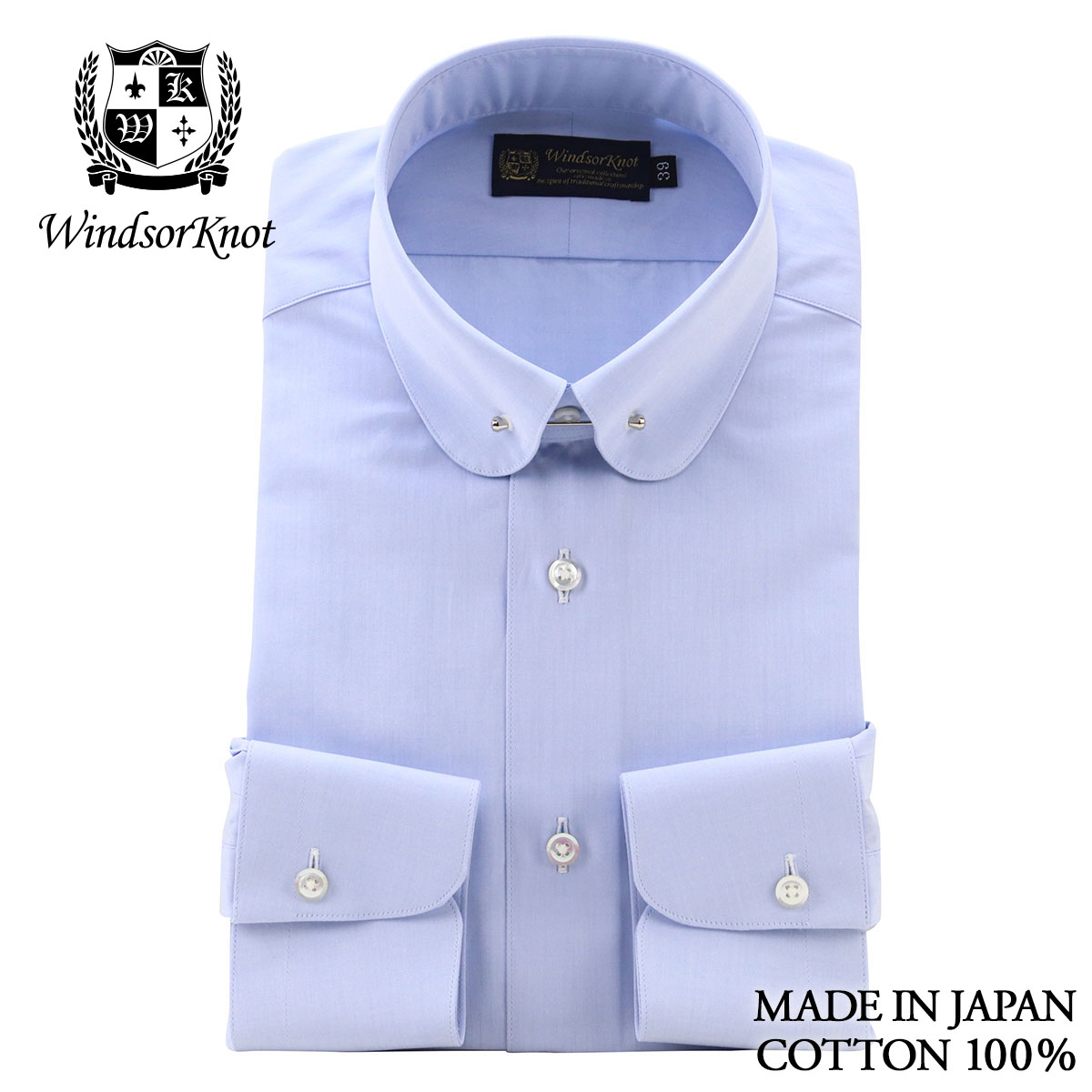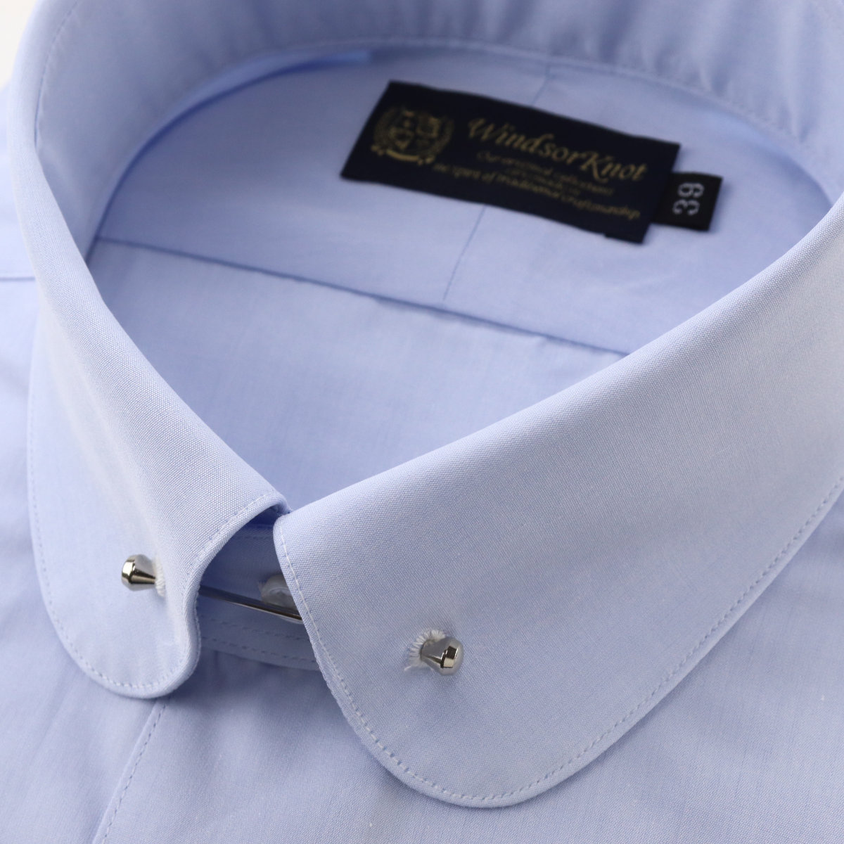 | 衿型 | ラウンドピンホールカラー(カラーピン付属)/コバステッチ クラシックな表情が魅力の「ラウンドピンホールカラー」、ネクタイを締めた後、ノットの下に付属のピンを通すことにより、結び目を持ち上げる効果があります。 剣先:約-cm 衿越:約4.3cm |