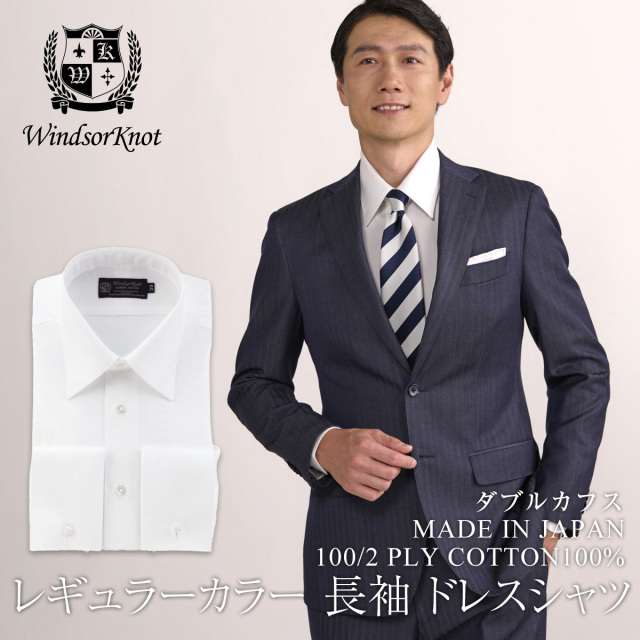 フォーマルで着用するレギュラーカラーのシャツもウィンザーノットを選択しました。