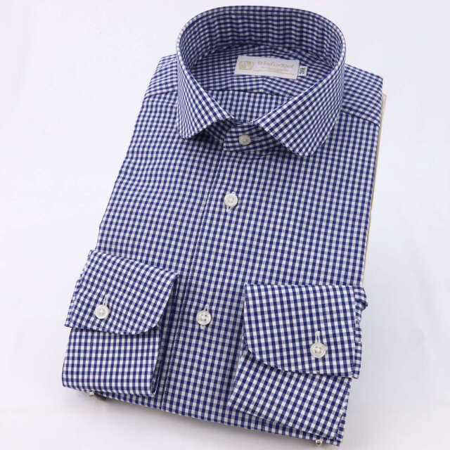 | 商品特徴 | 「オンオフ使える人気のギンガムチェック」 ギンガムチェック柄をクラシックなラウンドカラーで仕立てたドレスシャツです。 カジュアルな軽快さと、ビジネスシーンにも対応する上品さを兼ね備えた一枚で、オンオフ問わず活躍します。 カラーは王道のネイビー×ホワイト、ネイビースーツやブレザーと合わせた清潔感あふれるスタイルなど、洗練された着こなしが楽しめます。 日本国内で裁断から縫製まで丁寧に仕上げた、最高品質の一枚をぜひお試しください。 |