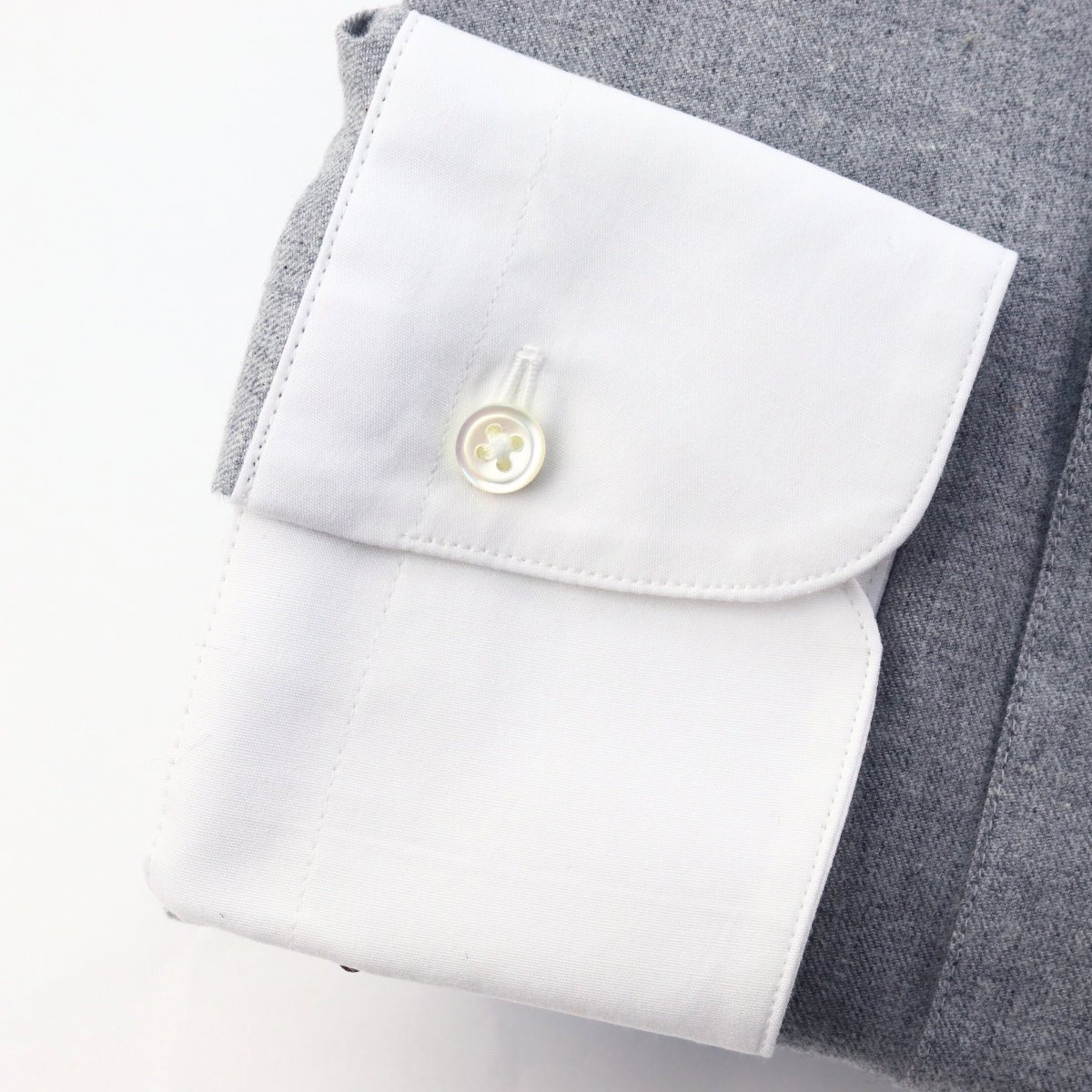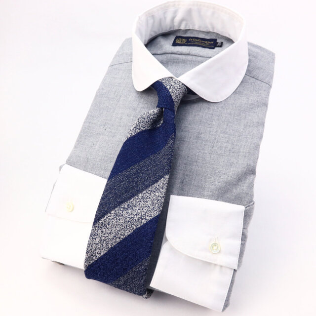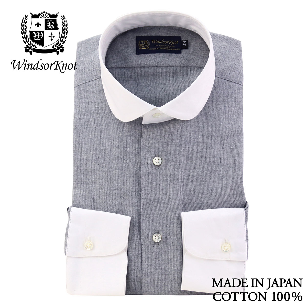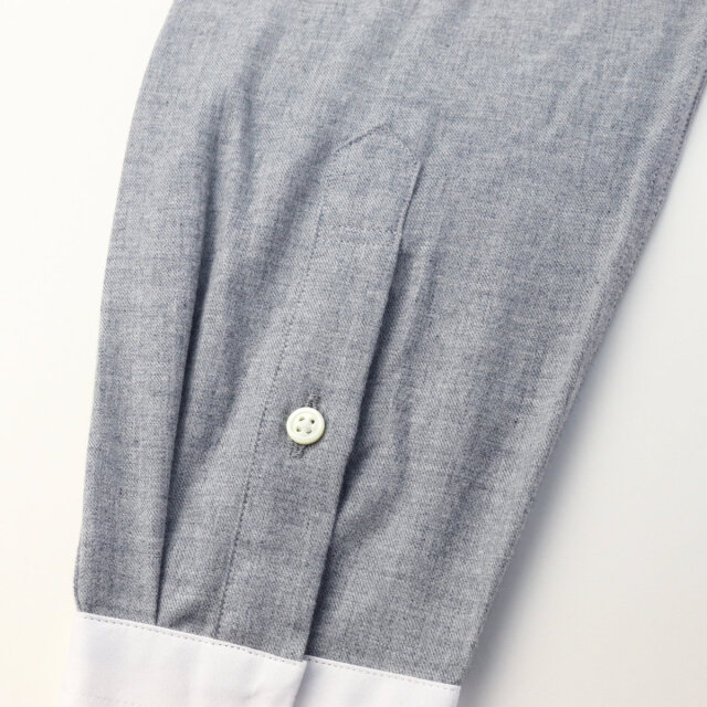 | 素材特徴 | ボディ・・・ライトグレー、コットンビエラ 衿、カフス・・・白無地、ブロード ボディに、ウールのような温かみのある表情で、肌触りも抜群のコットンビエラ生地を使用しました。 ドレープ感がある柔らかな薄手の起毛素材なので高級感がありとても上品です。 衿とカフスは、コットンビエラの風合いに合わせて、ソフトな芯地を使い柔らかく仕立てたブロード生地です。 優しい肌触りで着心地も抜群です。 |