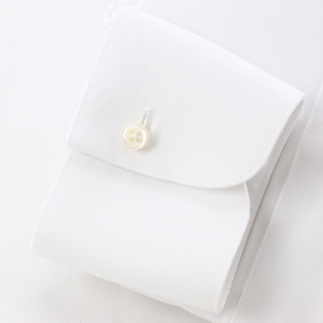 | 素材特徴 | 光沢感が美しい、高番手のヘリンボーン生地を使用しています。 柔らかな質感で着心地がとても良く、シャツ生地として最適なハリとコシも持たせており、耐久性にも優れています。 さらに、手入れの簡単なイージーアイロン(イージーケア)加工を施しています。 イージーアイロンとは、綿100%の生地の風合いや着心地を損なわずに、シワになりにくい加工を施したものです。 形態安定加工よりは防シワ性は弱くなりますが、アイロンがけが簡単にでき、天然素材の風合いも生かせるため、人気があります。 |