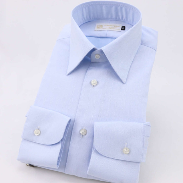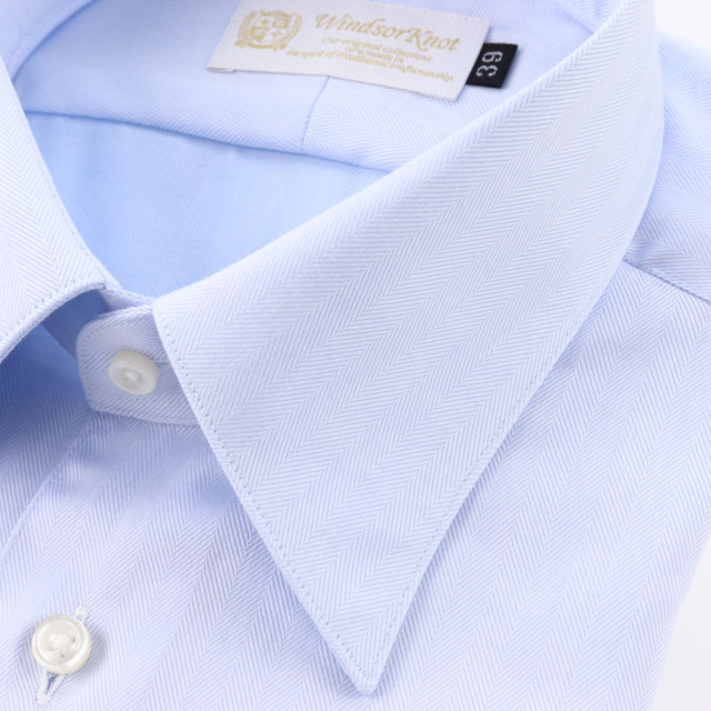 ベースカラーは、こちらのスカイブルーと色違いのホワイトを選びました。 ビジネスにぴったりのヘリンボーン生地で、どちらの雰囲気も気に入っています。 特に、ブルー調のシャツで気軽に使い回しのできる素材を探していたので、重宝しています。 ウィンザーノットシリーズとの大きな違いは、ボタンの材質にあるようです。 厚さ2mmと記載されていますが、高瀬貝のボタンと比べて、 こちらのプラスチック製ボタンは、少し厚みがあり、ボタンの掛け外しにやや難があります。 オプションで高瀬貝のボタンに変更できるとよいと思いました。 イージーアイロンの商品ながら、洗濯機(縦型・ネット使用)の脱水時間が長いとシワになりやすく、 アイロンをかけてもシワが伸びにくいので、自宅で洗濯する際には工夫が必要です。 また、今回初めて袖丈補正をオーダーしましたが、カットする長さだけではなく、 要望欄で裄丈を指定することで、きっちりと対応していただきました。 |