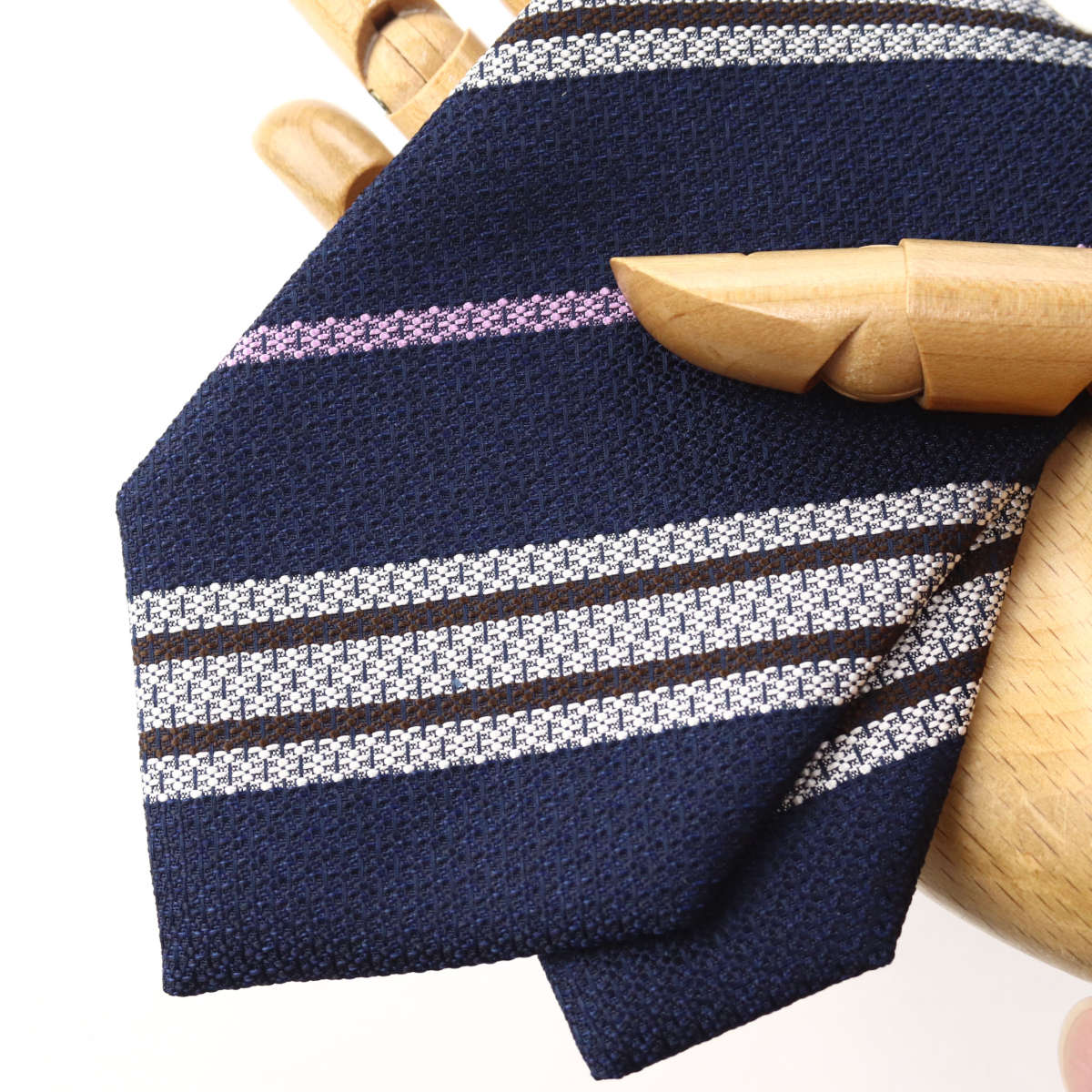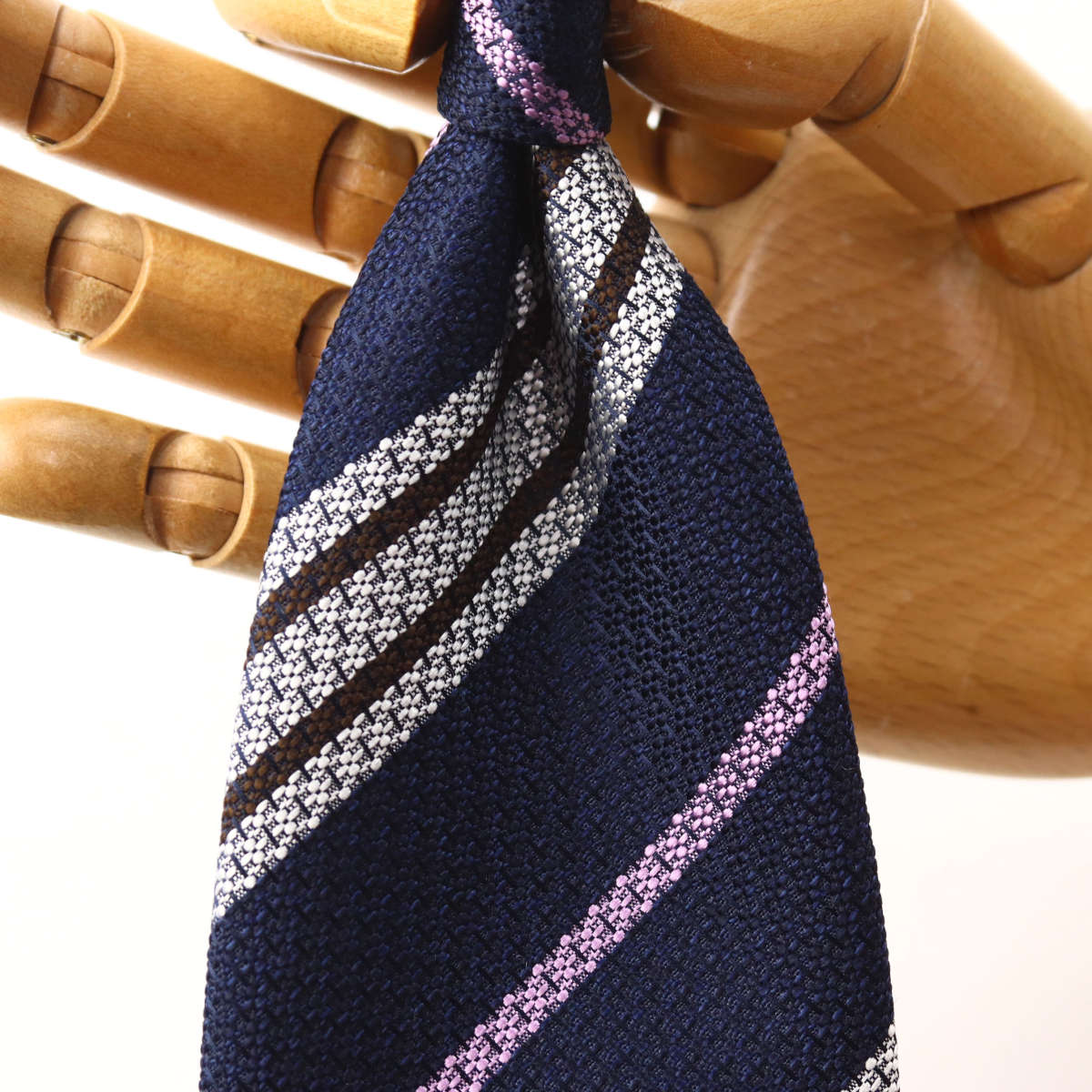 | 商品特徴 | 「軽やかな織り地のストライプタイ」 ザックリとした織り地が軽快な印象を与えるストライプタイ。スーツスタイルはもちろん、コットンやリネンなどカジュアルなジャケットとも相性抜群です。 シックなカラーリングなので上品で合わせやすく、大人の洗練されたスタイルを演出します。 このネクタイは熟練の職人によって一針一針手縫いされ、丁寧に仕上げられています。 |