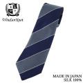 | 素材特徴 | 高品質な国産シルク生地を厳選して使用しています。細かなヘリンボーンのような織りが施されており、上品さとボリューム感を兼ね備えた生地です。シルクの打ち込みも非常に優れており、ネクタイにしっかりとした質感とハリ、コシを与えます。ノットが締めやすく、美しいディンプルを作り出すのに最適です。 |