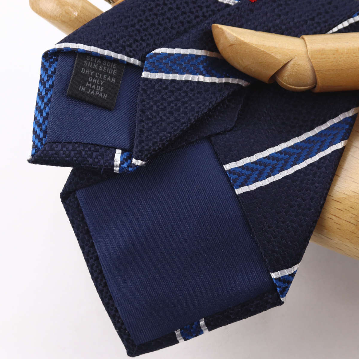 | 素材特徴 | 高品質な国産シルク生地を厳選して使用しています。ざっくりとした織りで、立体感のある生地感が特徴です。シルクの打ち込みも非常に優れており、ネクタイにしっかりとした質感とハリ、コシを与えます。ノットが締めやすく、美しいディンプルを作り出すのに最適です。 |