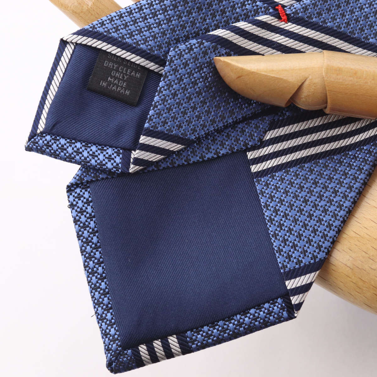 | 素材特徴 | 高品質な国産シルク生地を厳選して使用しています。ざっくりとした織りが表情豊かで、軽やかな雰囲気を演出します。 シルクの打ち込みが非常に良く、ネクタイにしっかりとした質感と、適度なハリとコシを与えます。ノットが締めやすく、美しいディンプルを作り出すのに最適です。 |