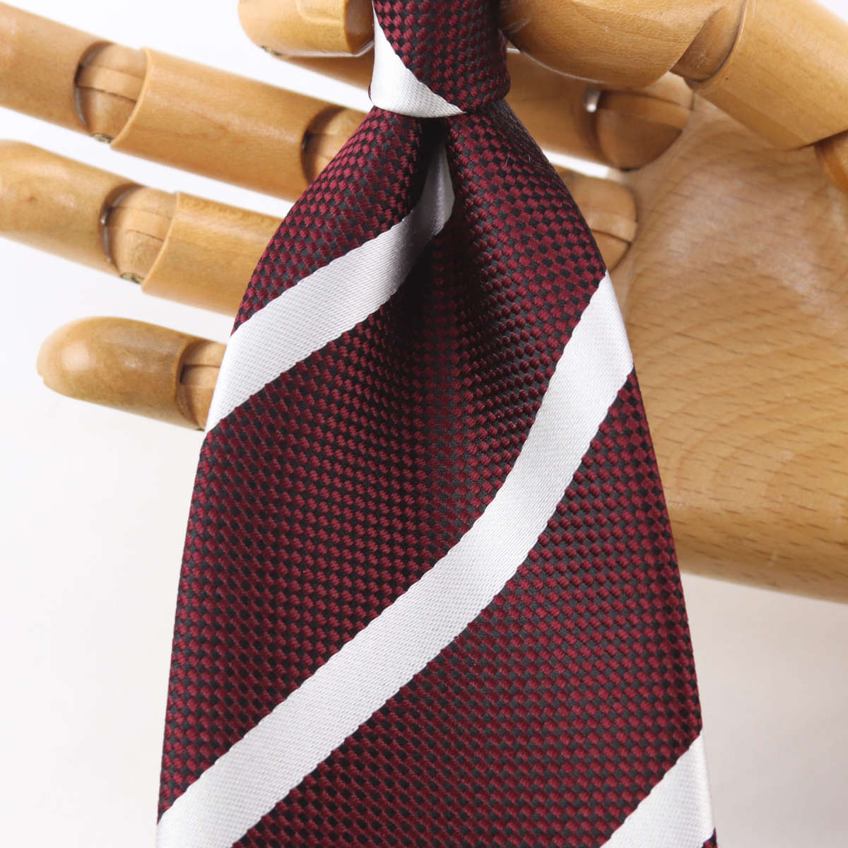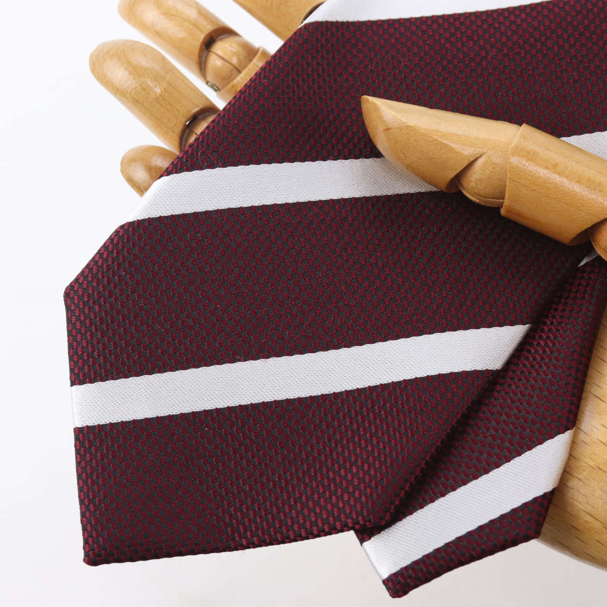 | 商品特徴 | 「洗練されたプレーンなストライプ」 凹凸のはっきりとしたバスケット織りをベースに、光沢のあるサテンのパールホワイトストライプをあしらった一本。 シンプルながらも力強い印象を与え、スーツスタイルに上品な存在感を添えます。 大人のビジネスシーンにふさわしい、洗練されたデザインです。 このネクタイは、熟練の職人が一針一針丁寧に手縫いで仕上げています。 締め心地の良さと、美しいノットをぜひお確かめください。 |