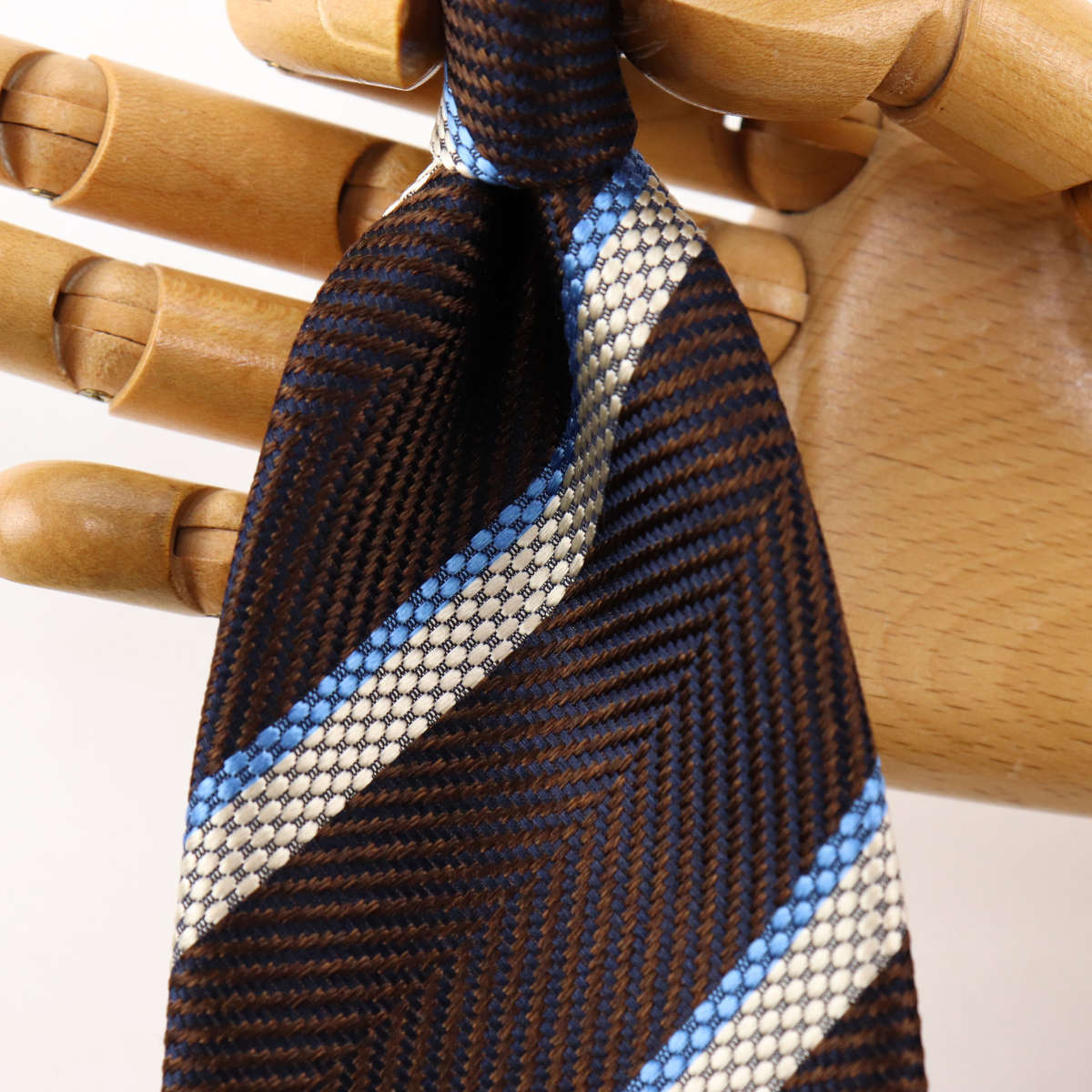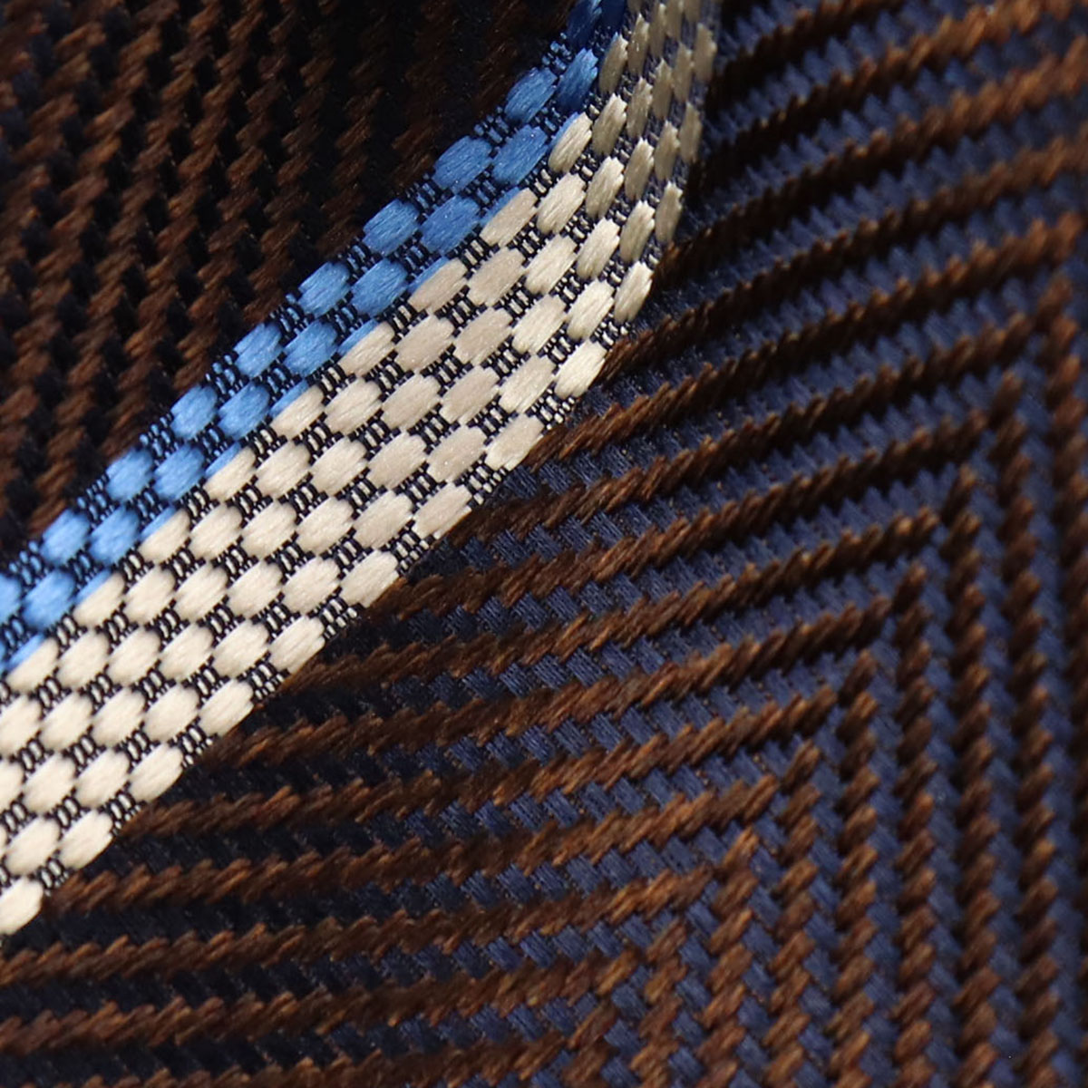 | 商品特徴 | 「織りの表情が際立つ、ストライプ」 ヘリンボーンとバスケット織りを組み合わせた、存在感のあるストライプ。 立体感ある織りとメランジ調の色合いが重なり、奥行きある表情を生み出します。 落ち着いた配色にさりげない差し色を効かせ、Vゾーンに洗練されたアクセントをプラス。 大人のビジネススタイルにふさわしい一本です。 熟練の職人が一針一針、丁寧に仕立てた一本。 締め心地の良さと美しいノットが、確かな品質を物語ります。 |