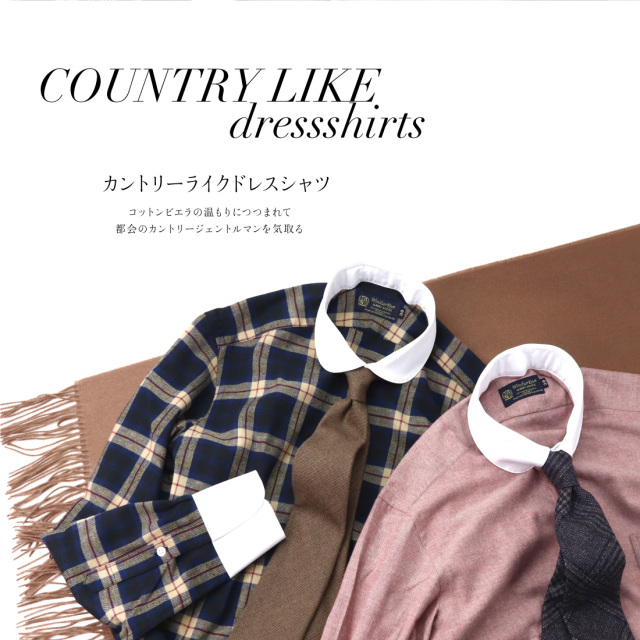 | 商品特徴 | COUNTRYLIKE dressshirts ~コットンビエラの温もりにつつまれて都会のカントリージェントルマンを気取る~ 英国発祥のカントリーライクな起毛素材「コットンビエラ」を使い、 ラウンドタブのクレリックカラーで、ドレッシーで都会的に仕立てました。 普段のビジネススタイルに取り入れて、さりげなく冬のお洒落を楽しむのも良し、 フラノなど紡毛スーツにウールタイを合わせて、思いっきりお洒落な冬のコーデを楽しむのも良し、 寒い日が待ち遠しくなる、スーツに合う起毛ドレスシャツです。 |