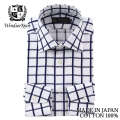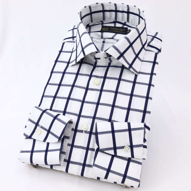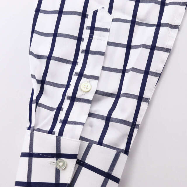 | 素材特徴 | 「上質な素材にこだわったクラシックパターン」 英国由来の大胆なチェック柄がクラシカルな印象を持つ、白地にネイビーのウィンドウペンチェックです。 厳選された高級な細番手の糸を高密度に織り込むことで、シャツ地として適切なハリとコシを実現し、さらさらとした心地よい肌触りを実現した高級生地です。 |